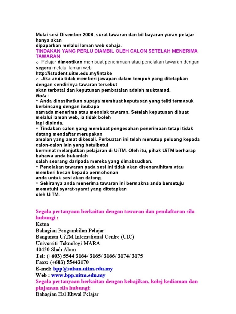 Semakan surat tawaran rayuan uitm home dac cute766.